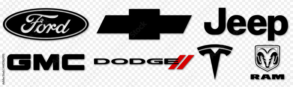 Vinnytsia Ukraine July 2 2021 Set Of American Car Brands Ford Chevrolet Jeep Gmc Dodge Tesla Buick Editorial Collection Of Auto Logos Stock Vector Adobe Stock